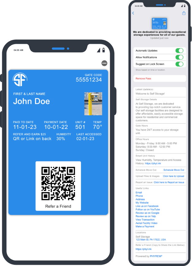 No app to download. No codes to remember. StorPass® is your digital pass to simpler, smarter storage—right inside your Apple or Google Wallet.
